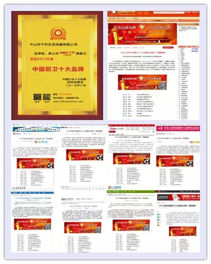 法國千科榮獲“2017年度中國廚衛(wèi)十大品牌”